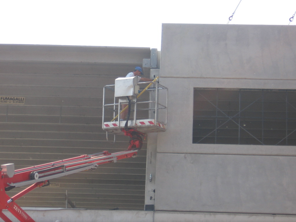 ampliamento capannone Zaba:operaio sulla piattaforma