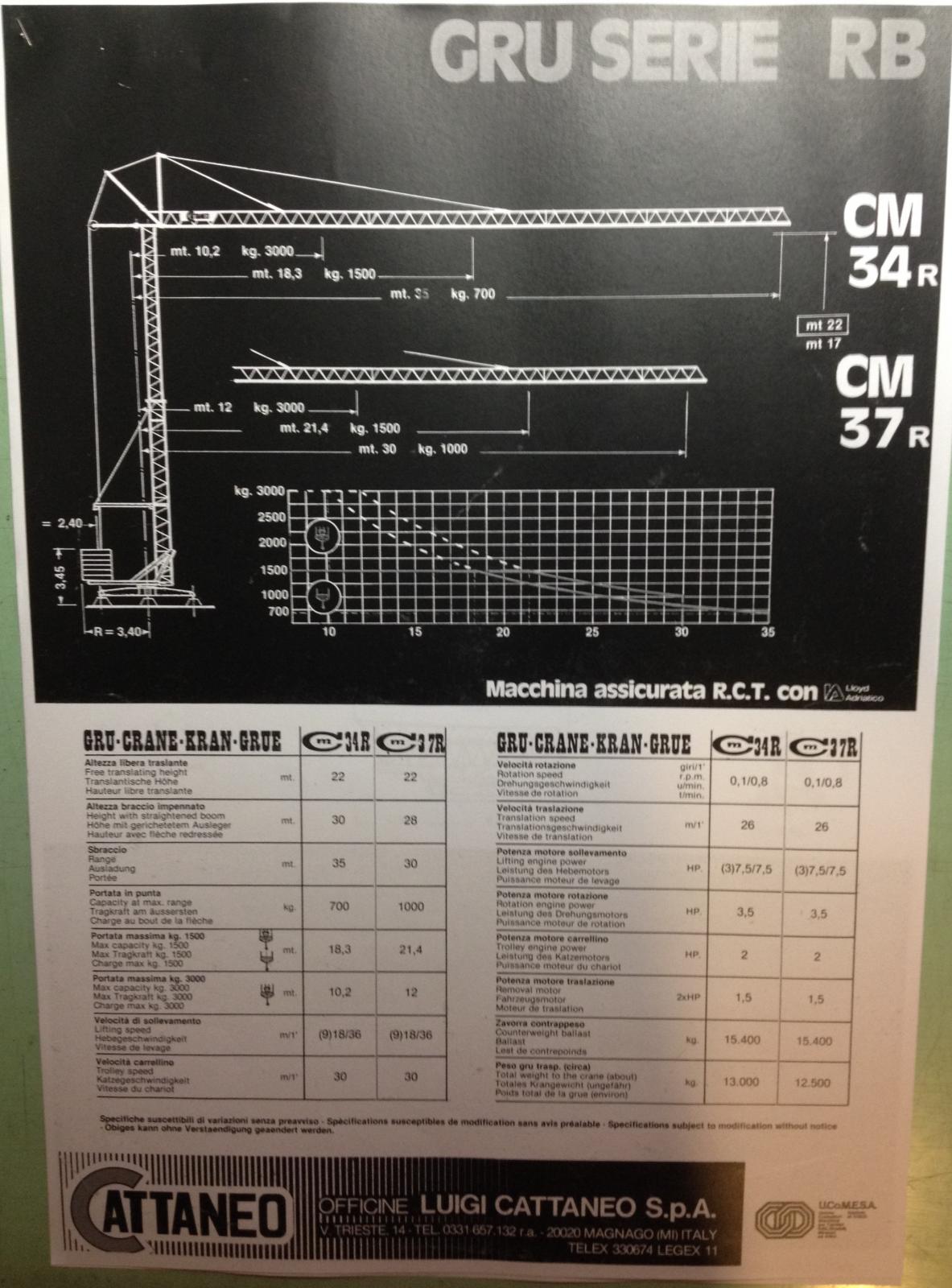 Album MMT Macchine per il Sollevamento Gru a Torre Cattaneo CM38 - Gru a Torre cm 34r / 37r