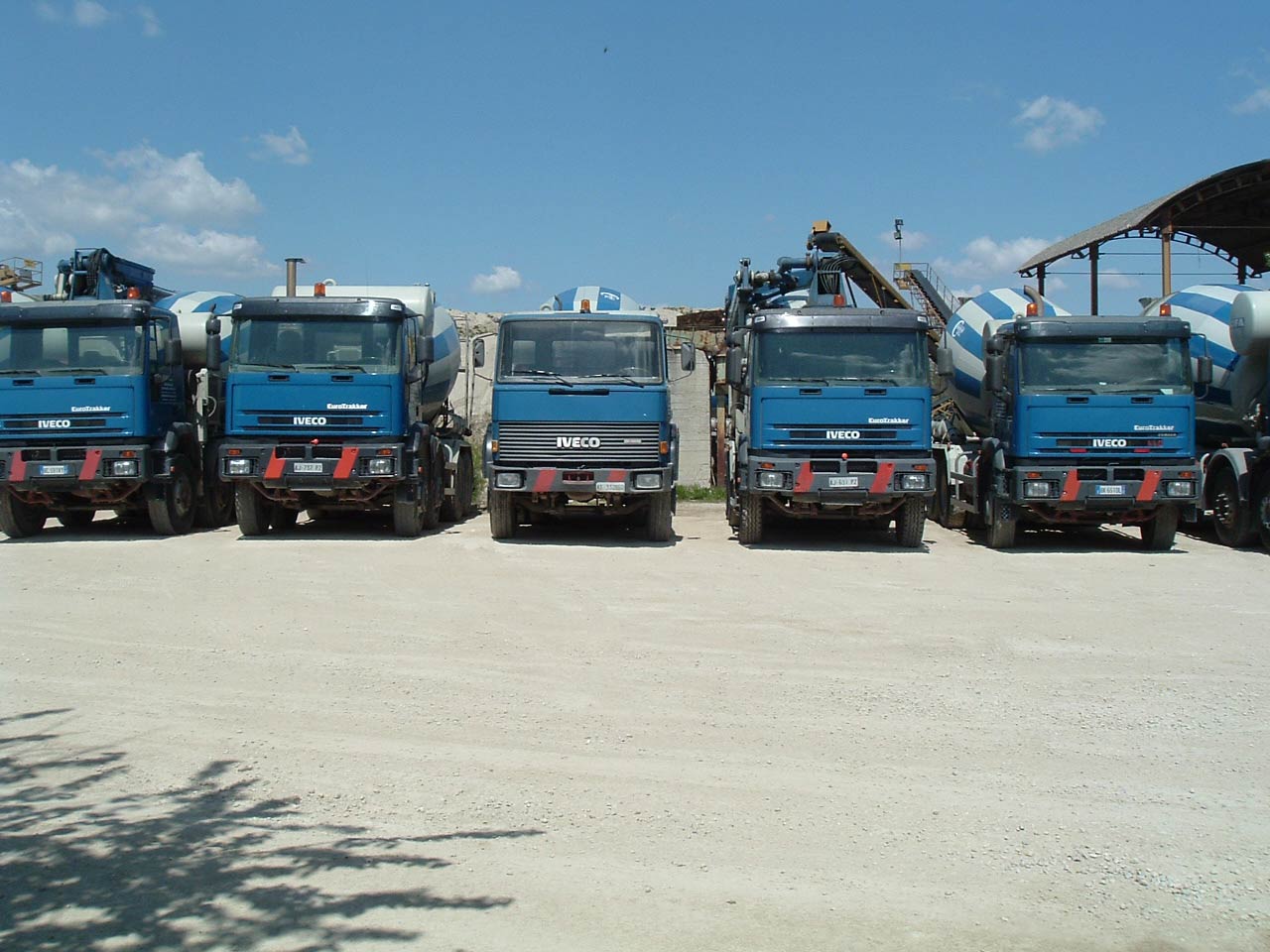 da sx: Iveco 410E42 betonpompa 28m, 410E42 e 330-36 betoniere,380E37 betonpompa 24m, 380E44 Cursor betoniera