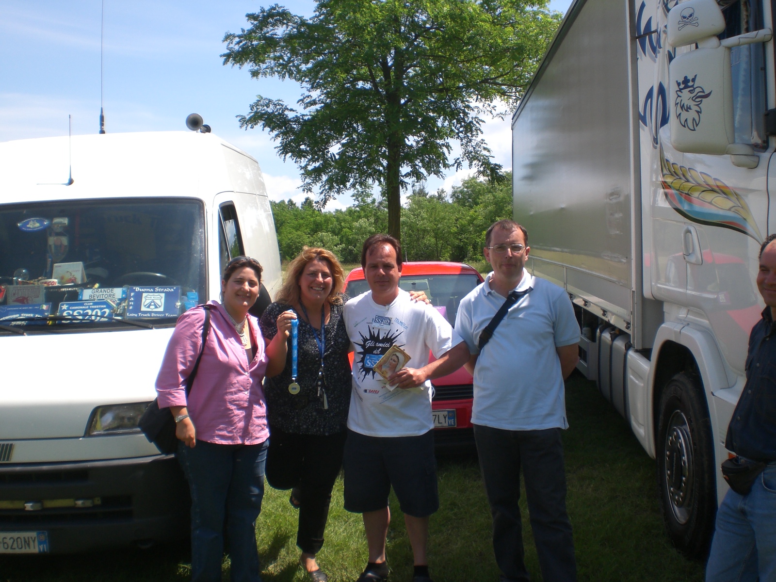 Ivan Dal Toso ex presidente e a tutt'oggi consigliere dell'ahighwaytruckteam consegna un ricordino da Mejougori dove ha recentemete portato a nome suo e di alcuni gruppi di amici TANTA SOLIDARIETA' e generi di prima necessità - Michele Rigato presidente del club Statale 202 ha consegnato la medaglia ricordo di questo riuscitissimo raduno!!!