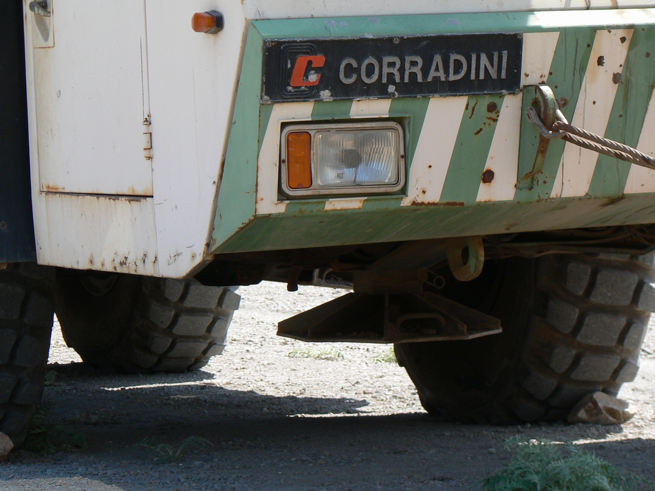 Si vede bene il piede stabilizzatore subito dietro la cabina guida.