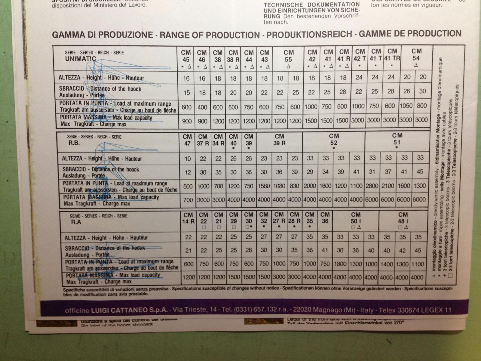 Album MMT Macchine per il Sollevamento Gru a Torre Cattaneo CM38 - Gru a Torre gamma cattaneo anni 70 80