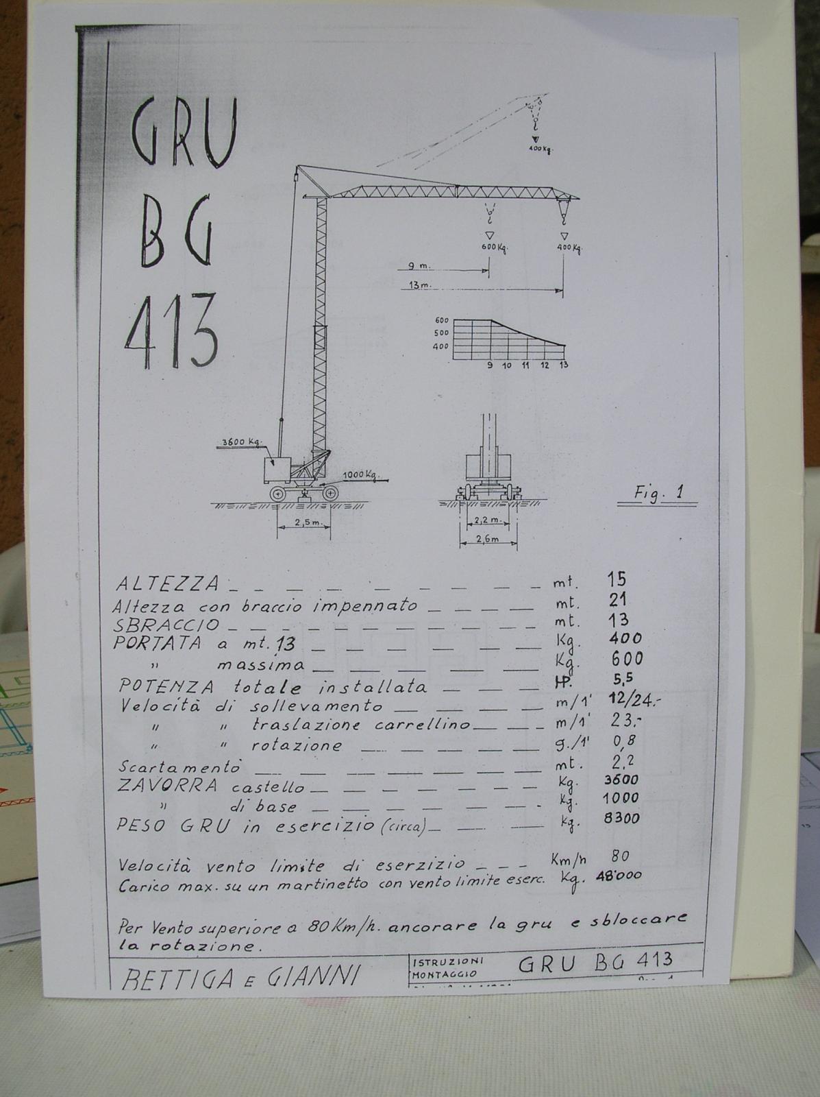 Album MMT Macchine per il Sollevamento Gru a Torre BETTIGA e GIANNI BG 413